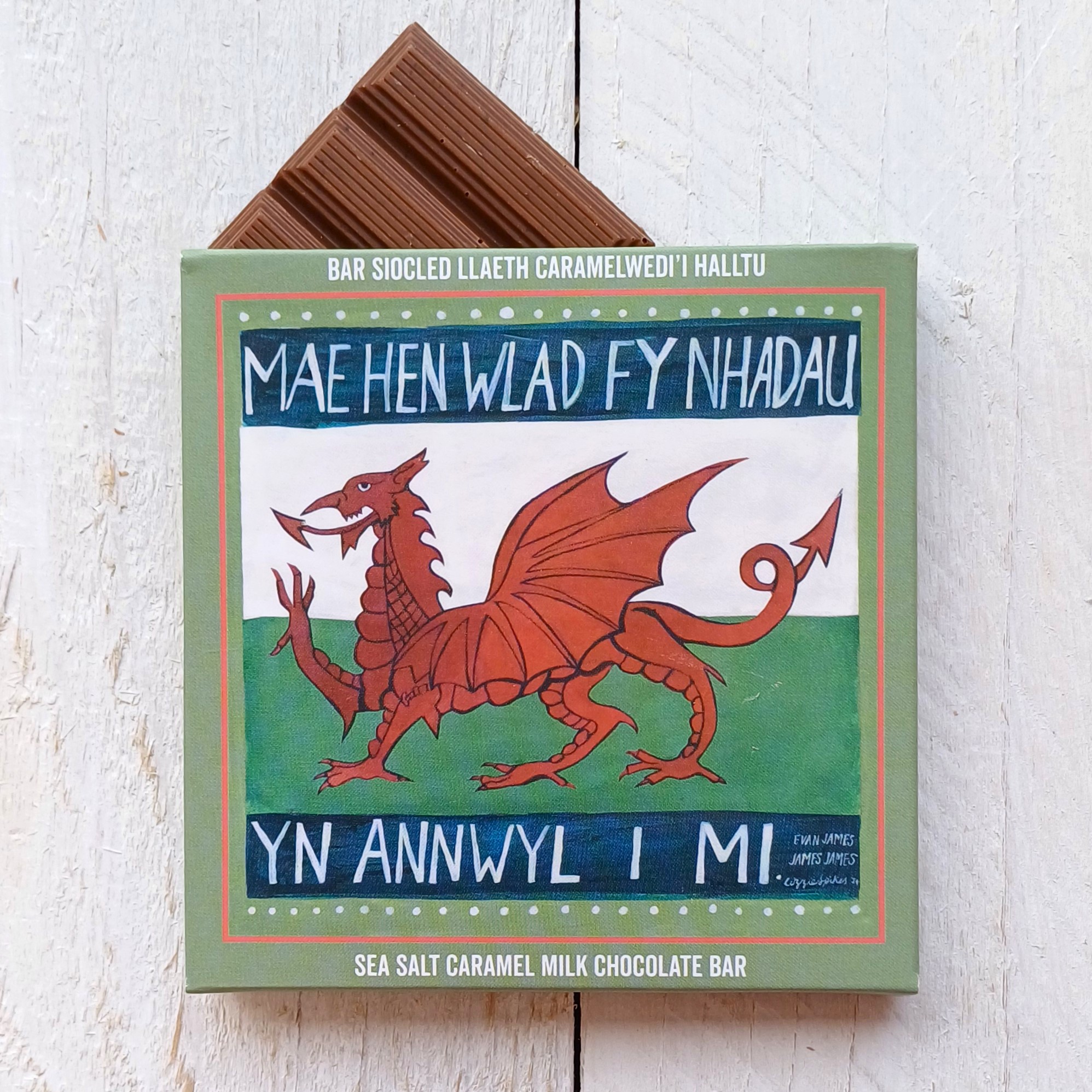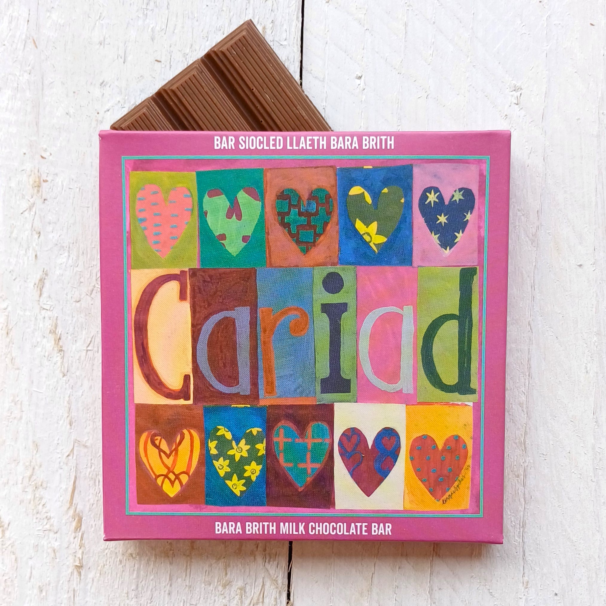 The design has a greeting in Welsh on the front, plus a description of the chocolate bar in both Welsh and English. This is not a token effort; everything is shown in both languages, right down to the nutritional information on the back.
